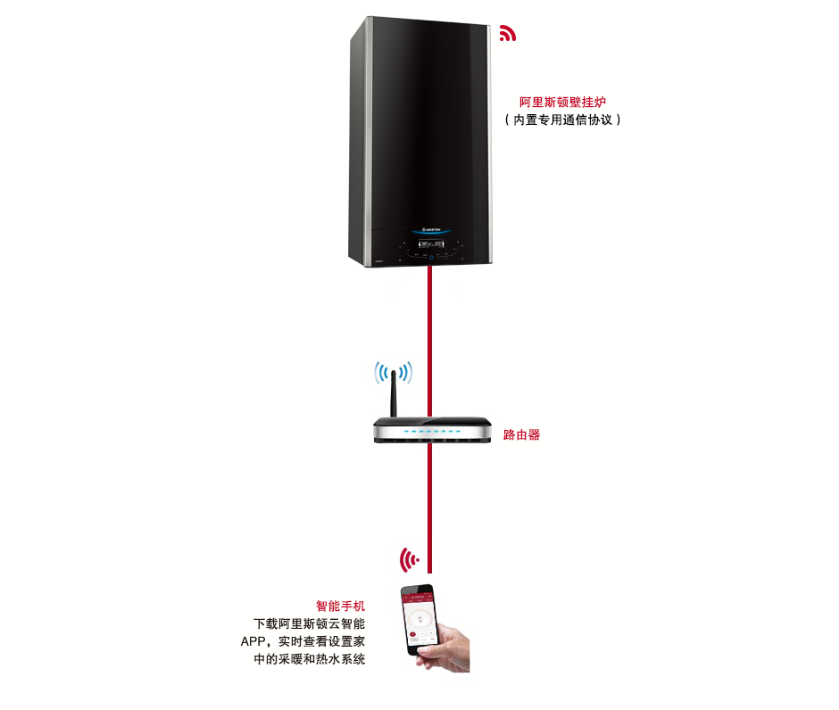 通過阿里斯頓云智能APP,無論何時何地,你都可以隨時隨地控制你的壁掛爐,了解系統工作狀況,獲取節能建議等,打開APP,發現更多精彩內容。