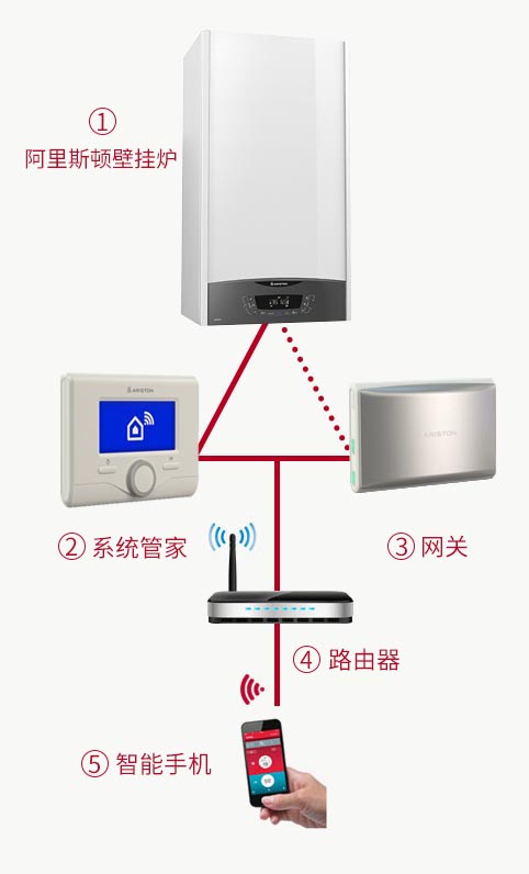 網(wǎng)關(若內(nèi)置WIFI的壁掛爐則無需網(wǎng)關)通過網(wǎng)關,可以讓你將你的壁掛爐接入網(wǎng)路,這樣就可以通過手機智能控制壁掛爐4